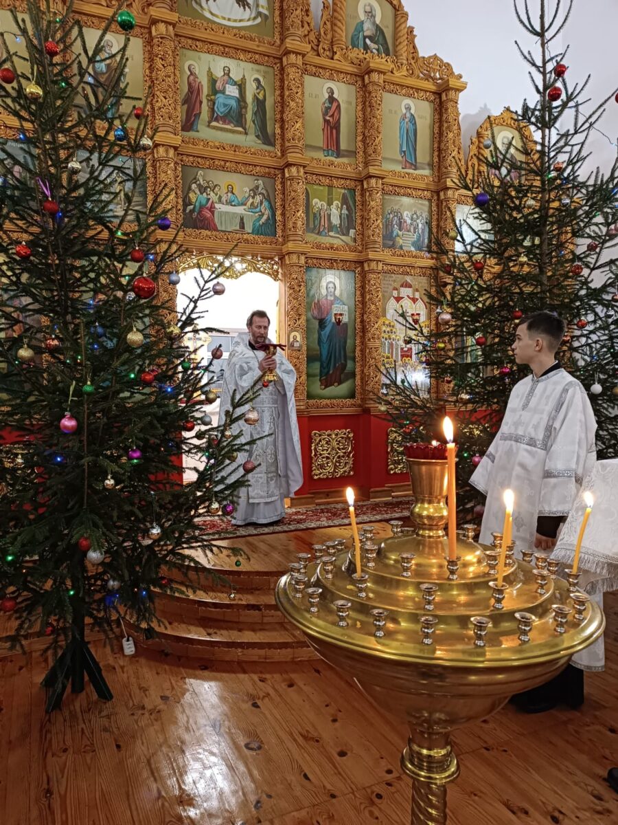 В ночь с 31 декабря на 1 января в храме во имя Новомучеников и Исповедников Российских п. Локоть настоятель храма и благочинный Брасовского церковного округа протоиерей Владимир Сафронов совершил Божественную литургию и молебен на Новолетие.