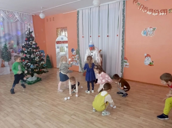 Забавный Снеговик пришел в гости к детворе. Он провел с малышами увлекательные эстафеты, ...